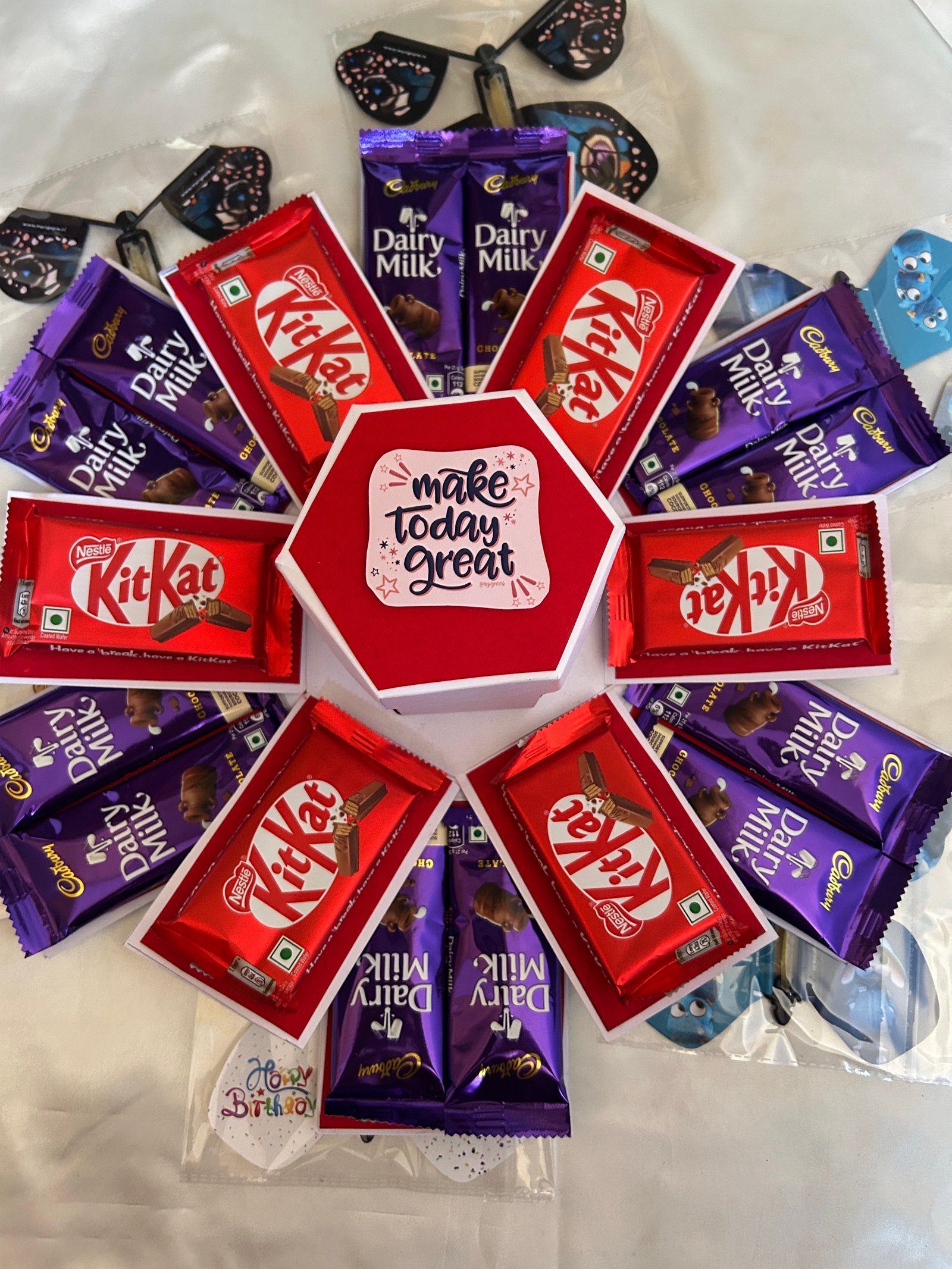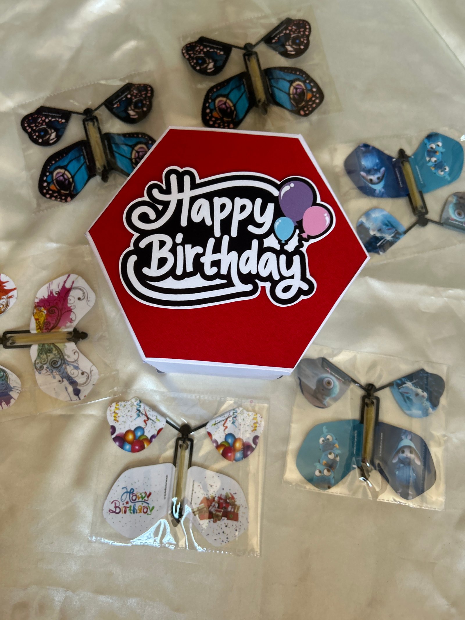 Unique pull-up photos opening for a surprise reveal , Filled with rich, indulgent chocolates , Sturdy, premium-quality gift box with butterfly artwork , Elegant and reusable packaging.