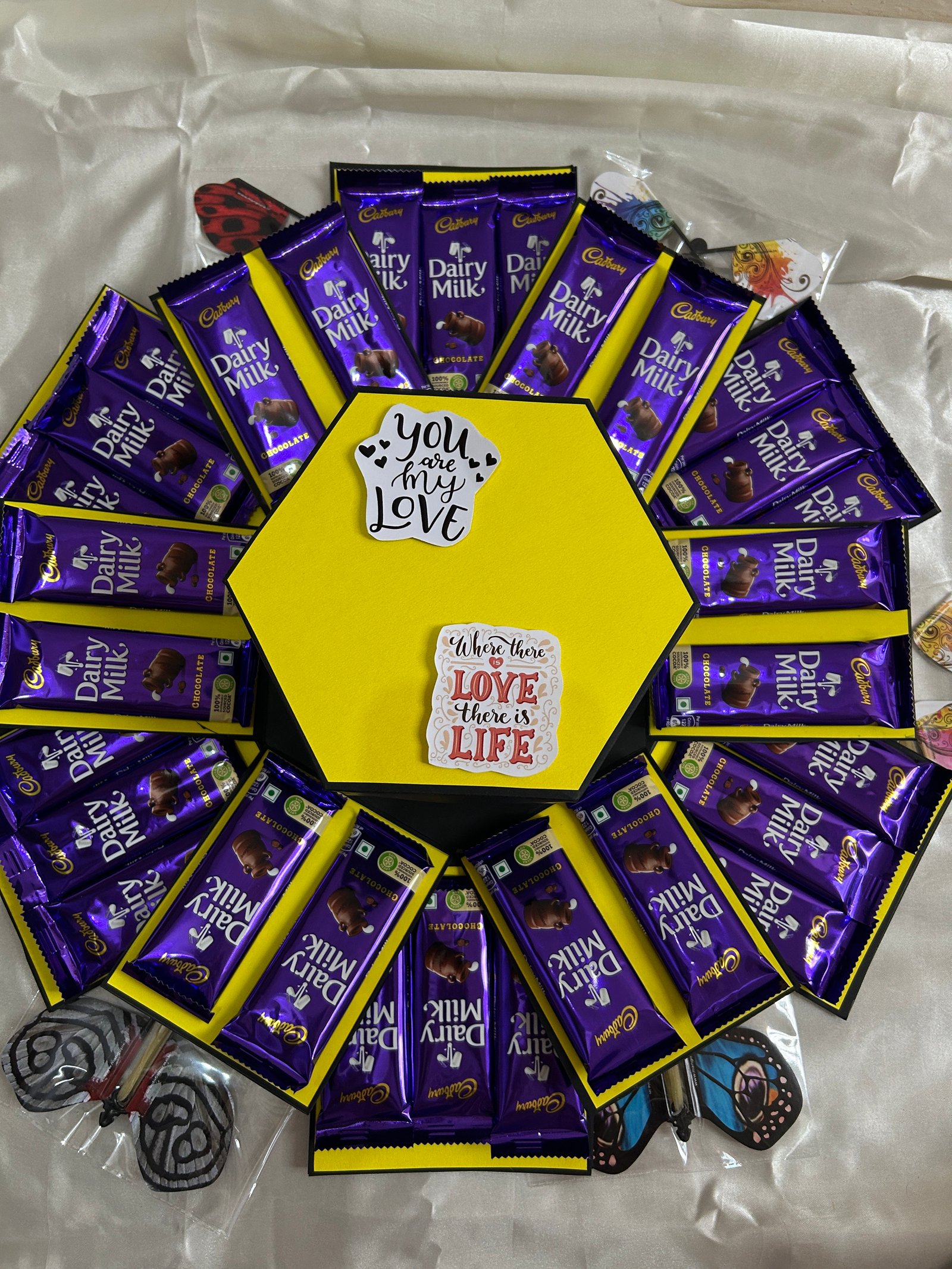 This chocolate box already includes butterflies.