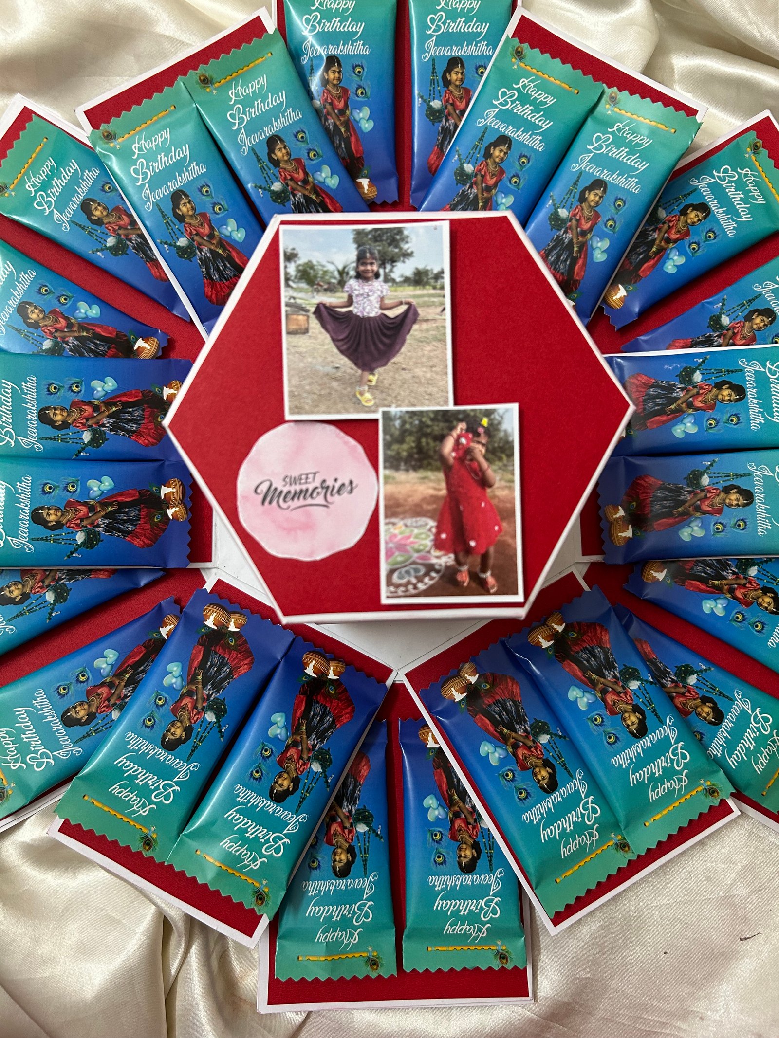 Customization is Easy: Provide a high-resolution photo (JPEG/PNG) and optional text (name, greeting) during ordering. photo on lid, on wrappers, plus a custom card inside