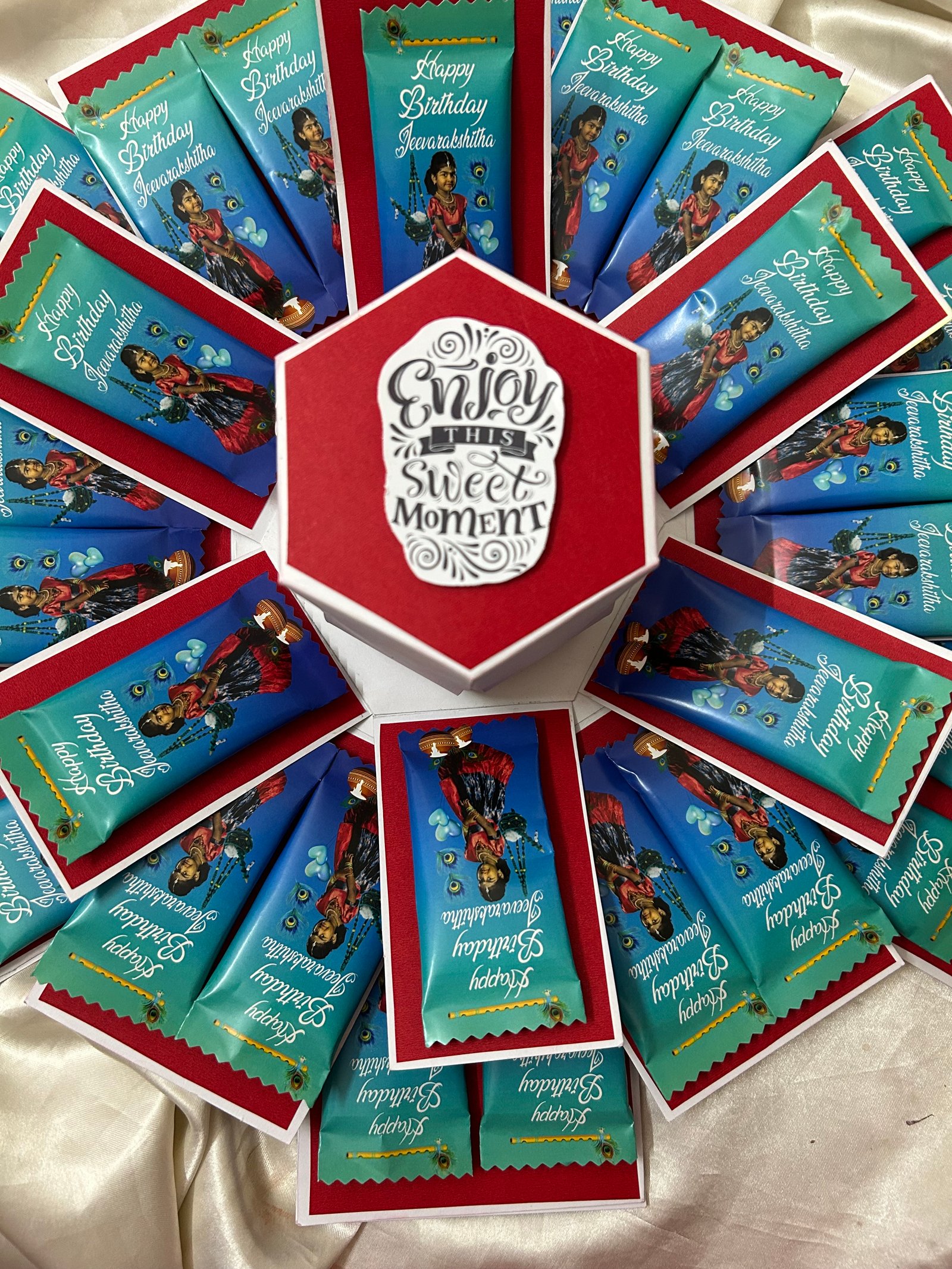 Customization is Easy: Provide a high-resolution photo (JPEG/PNG) and optional text (name, greeting) during ordering. photo on lid, on wrappers, plus a custom card inside